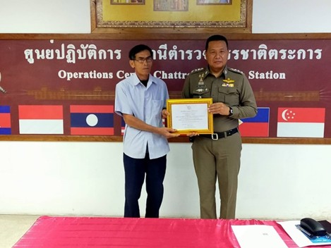 พ.ต.อ.วิเชียร เพชรเสนา ผกก.สภ.ชาติตระการ มอบฝ่ายธุรการจัดทำใบประกาศเกียรติคุณเพื่อมอบให้กับ นายสิทธานต์ ชัยปัน และนายบุญหลาย ศรีจันทร์ ที่มีความประพฤติดีด้าน “ความซื่อสัตย์สุจริต” เก็บสิ่งของคืนให้แก่เจ้าของ สมควรแก่การยกย่องสรรเสริญและเป็นตัวอย่างที่ดีต่อสังคม ในการประชุมประจำเดือน กุมภาพันธ์ ณ ห้องประชุม ชั้น 3 สภ.ชาติตระการ