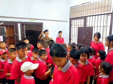 อำนวยการโดย พ.ต.อ.รวิกร อุกฤษฎ์มโนรถ ผกก.สภ.ชาติตระการ มอบหมาย พ.ต.อ.ศุภมิตร ตุ่นนิ่ม สวป.สภ.ชาติตระการพร้อมฝ่ายธุรการ ให้การต้อนรับ คณะครูและนักเรียน โรงเรียนบ้านนาล้อม ได้มาเนี่ยมและศึกษาดูงาน ที่ สภ.ชาติตระการ