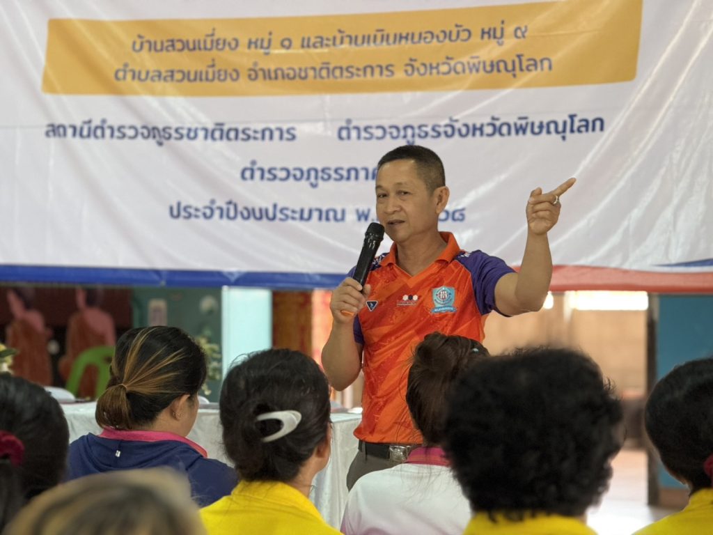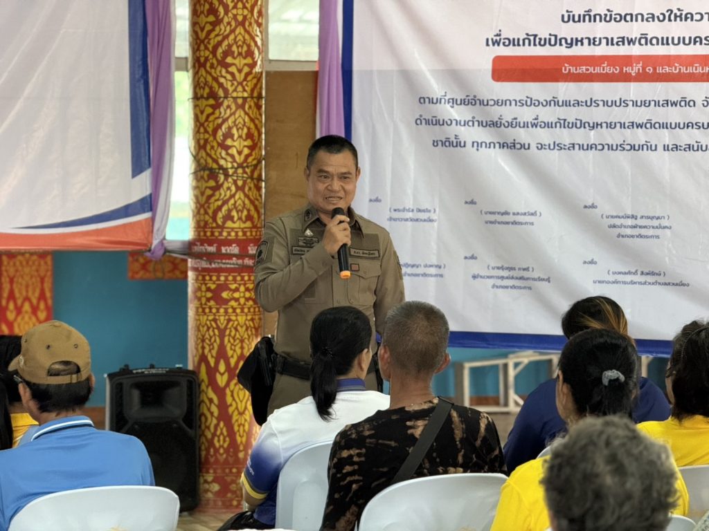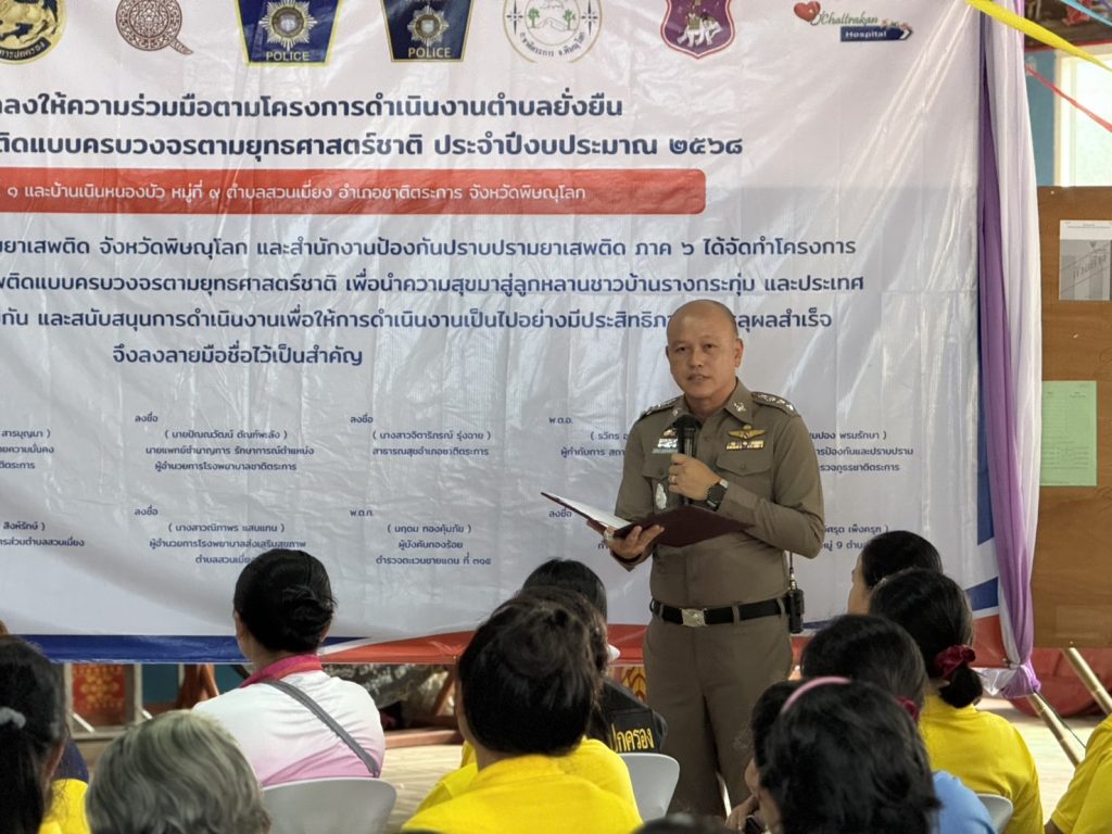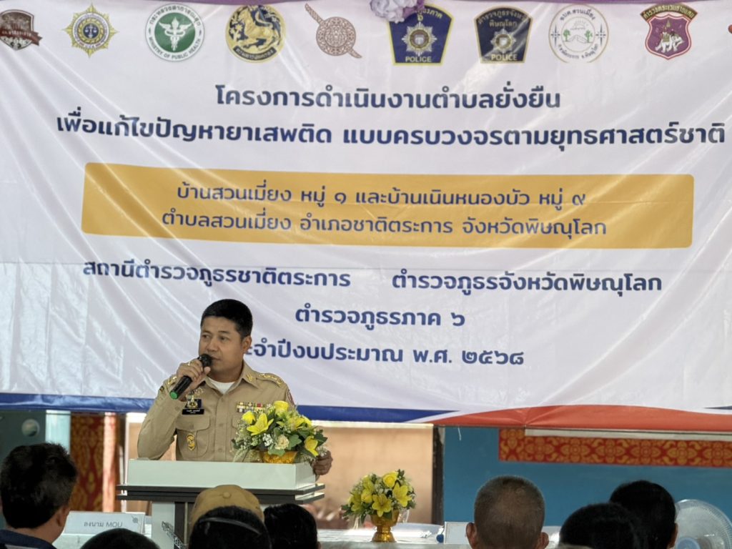 17 มีนาคม 2568 เวลา 10.00 น. พ.ต.อ.รวิกร อุกฤษฎ์มโนรถ ผกก.สภ.ชาติตระการ , พ.ต.ท.สมปอง พรมรักษา รอง ผกก.ป.สภ.ชาติตระการ , พ.ต.ท.ศุภมิตร ตุ่นนิ่ม สวป.สภ.ชาติตระการ พร้อมด้วย ชุดปฏิบัติการตำบลยั่งยืน สภ.ชาติตระการ ร่วมกับ หัวหน้าส่วนราชการ ภาคีเครือข่าย ,ผู้นำชุมชน ,อสม และชาวบ้าน ต.สวนเมี่ยง ร่วมพิธีเปิดโครงการดำเนินงานตำบลยั่งยืน เพื่อแก้ไขปัญหายาเสพติดแบบครบวงจรตามยุทธศาสตร์ชาติ ประจำปี 2568 เพื่อแก้ไขการแพร่ระบาดของยาเสพติดในชุมชน โดยเสริมสร้างให้ชุมชนเกิดความเข้มแข็ง เข้าใจ และรับรู้ปัญหาพิษภัยของยาเสพติด สภ.ชาติตระการ จึงได้จัดทำโครงการร่วมกับหน่วยงานที่เกี่ยวข้องในพื้นที่ โดยมีหมู่บ้านเป้าหมายคือ บ้านสวนเมี่ยว หมู่ 1 และบ้านเนินหนองบัว หมู่ 9 ตำบลสวนเมี่ยง อำเภอชาติตระการ จังหวัดพิษณุโลก พร้อมทั้ง ร่วมลงนามข้อตกลง(MOU) โครงการตำบลยั่งยืน มีการตรวจปัสสาวะผู้นำชุมชน ผู้นำท้องถิ่น (CBTx) ณ วัดสวนเมี่ยง หมู่ 1 ต.สวนเมี่ยง อ.ชาติตระการ จ.พิษณุโลก