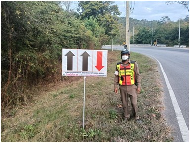 พ.ต.อ.วิเชียร เพชรเสนา ผกก.สภ.ชาติตระการ,พ.ต.ท.พลไพสิฐ พิทักษ์โสภณ รองผกก.ป. พ.ต.ท.ศุภมิตร ตุ่นนิ่ม สวป.สภ.ชาติตระการ สั่งการให้ ร.ต.อ.ธัชชัย ไพรจิตร รองสวปฯปฏิบัติหน้าที่หัวหน้างานจราจรพร้อมสายตรวจจราจร ติดป้ายประชาสัมพันธ์การเดินรถในพื้นที่เขาคอม้า ต.บ้านดง อ.ชาติตระการ จ.พิษณุโลก