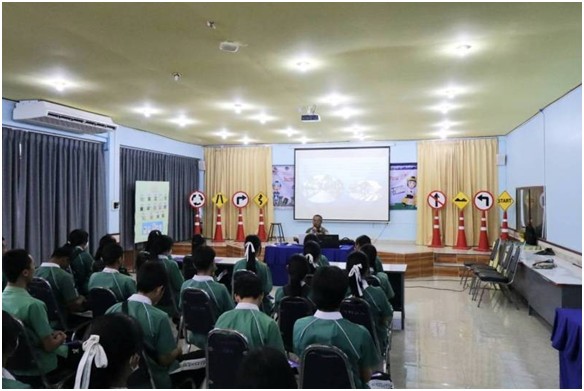 พ.ต.อ.วิเชียร เพชรเสนา ผกก.สภ.ชาติตระการ,พ.ต.ท.พลไพสิฐ พิทักษ์โสภณ รองผกก.ป.,พ.ต.ท.ศุภมิตร ตุ่นนิ่ม สวป.สภ.ชาติตระการ สั่งการให้ ร.ต.อ.ธัชชัย ไพรจิตร รองสวปฯปฏิบัติหน้าที่หัวหน้างานจราจรพร้อมสายตรวจจราจร ประชาสัมพันธ์กฎหมายจราจรและวิธีขับขี่อย่างปลอดภัย ให้กับนักเรียนโรงเรียนสวนเมี่ยงวิทยา ต.สวนเมี่ยง อ.ชาติตระการ จ.พิษณุโลก โดยมีนักเรียนเข้ารับการอบรมฯ จำนวน 30 คน