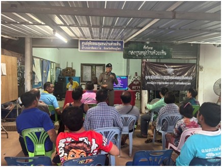พ.ต.อ.วิเชียร เพชรเสนา ผกก.สภ.ชาติตระการ พร้อมพ.ต.ท.ศุภมิตร ตุ่นนิ่ม สวป.สภ.ชาติตระการ ร.ต.อ.ธัชชัย ไพรจิตร รองสวปฯปฏิบัติหน้าที่หัวหน้างานจราจรพร้อมสายตรวจจราจร ประชาสัมพันธ์การสวมหมวกนิรภัย กฎหมายจราจร แก่ประชาชนบ้านห้วยเหิน