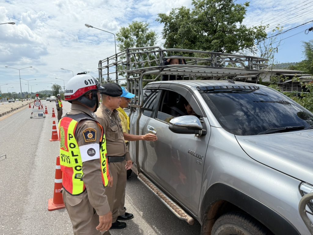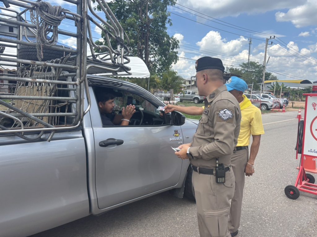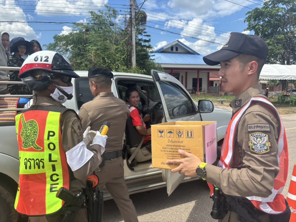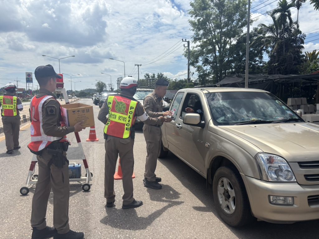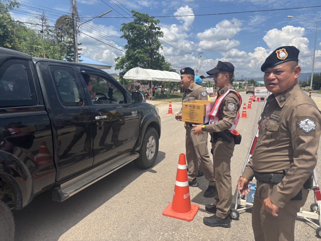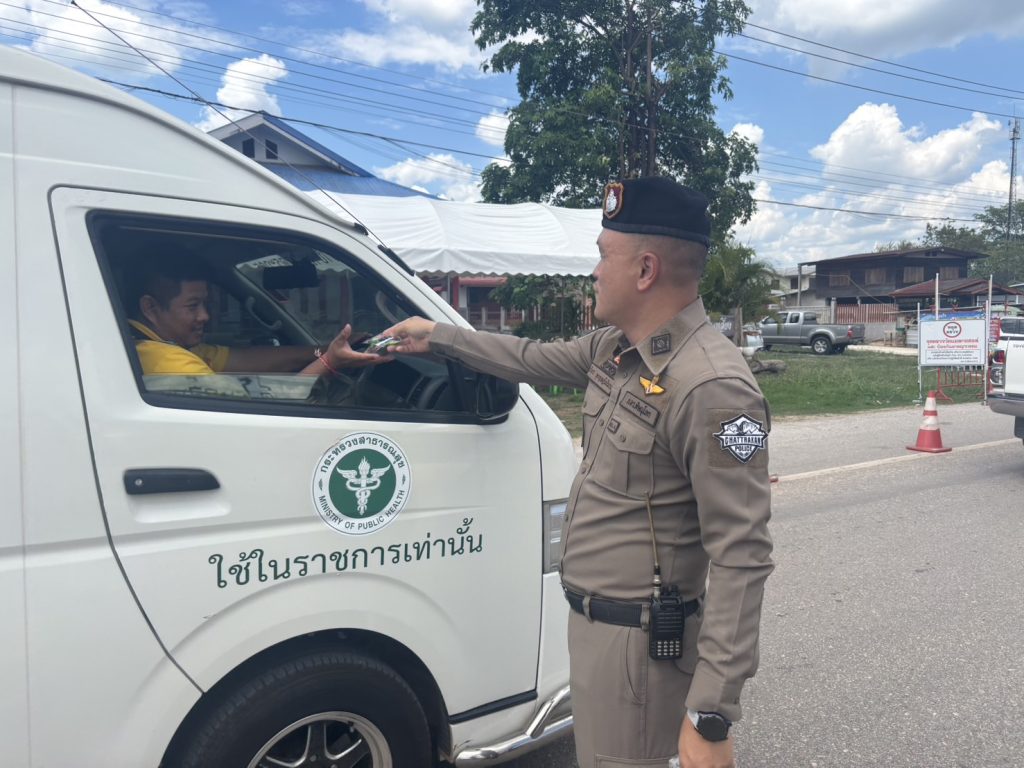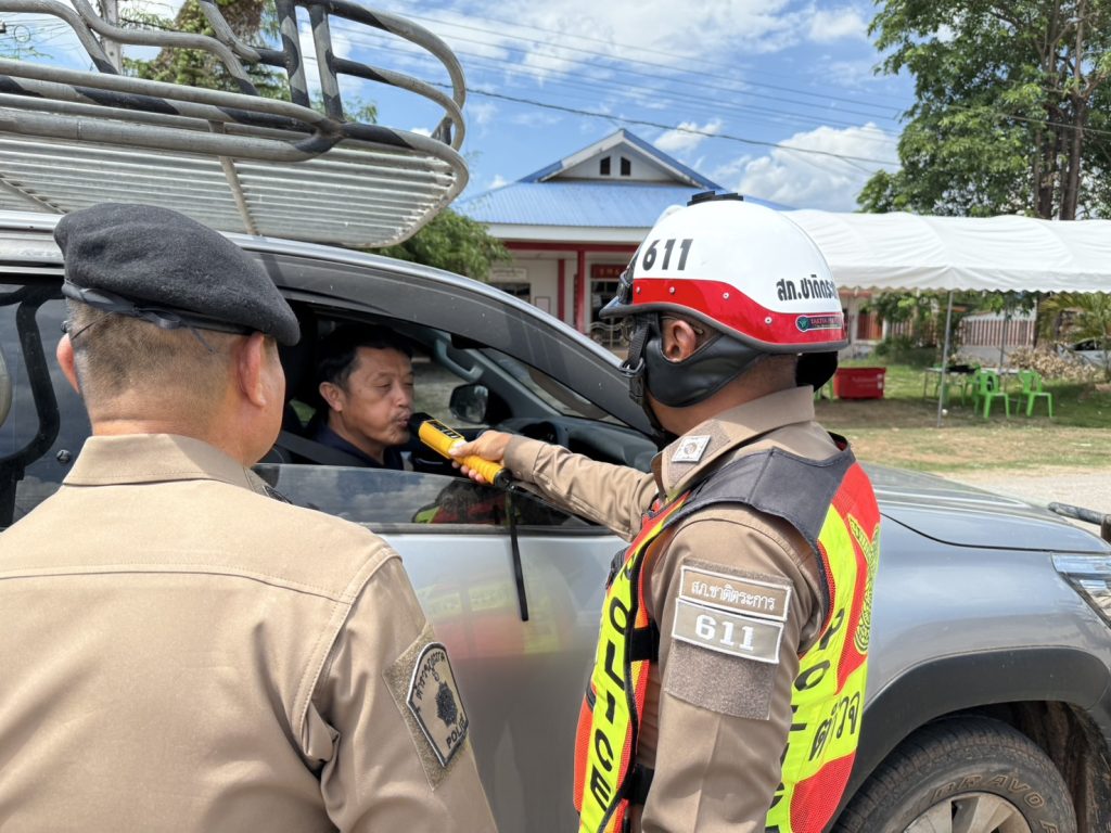 วันนี้ ( 17 เม.ย. 68 ) เวลา 13.30 น. พ.ต.อ.รวิกร อุกฤษฎ์มโนรถ ผกก.สภ.ชาติตระการ, พ.ต.ท.สมปอง พรมรักษา รอง ผกก.ป.สภ.ชาติตระการ พ.ต.ท.ศุภมิตร ตุ่นนิ่ม สวป.สภ.ชาติตระการ พร้อมเจ้าหน้าที่ตำรวจจราจร สายตรวจรถยนต์ สภ.ชาติตระการ ได้ร่วมกันรณรงค์ ลดและป้องกันอุบัติเหตุทางถนน ช่วงเทศกาลสงกรานต์ 2568 บริเวณถนนสาย 1143 ม.4 ต.ป่าแดง อ.ชาติตระการ จว.พิษณุโลก ซึ่งเป็นเส้นทางใช้เดินทางสัญจรไปจากภาคเหนือไปภาคตะวันออกเฉียงเหนือ โดยการกวดขันวินัยจราจร ตรวจเป่าวัดปริมาณแอลกอฮอล์ผู้ขับขี่ และแจกลูกอมจี๊ดจ๊าด น้ำดื่ม เพื่อกระตุ้นให้ผู้ขับขี่เกิดความตื่นตัว กระปรี้กระเปร่า ไม่ง่วงนอน ระวังป้องกันการหลับใน