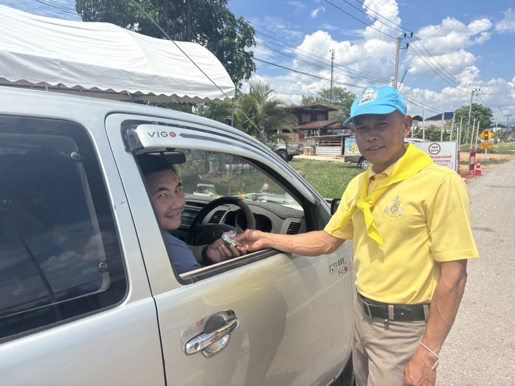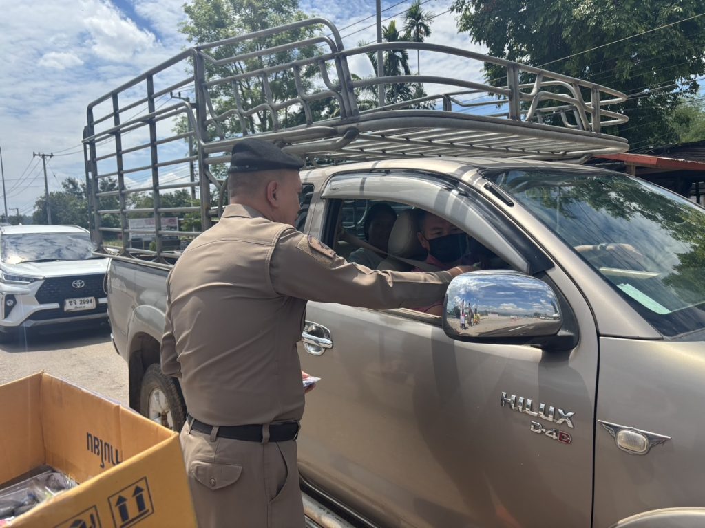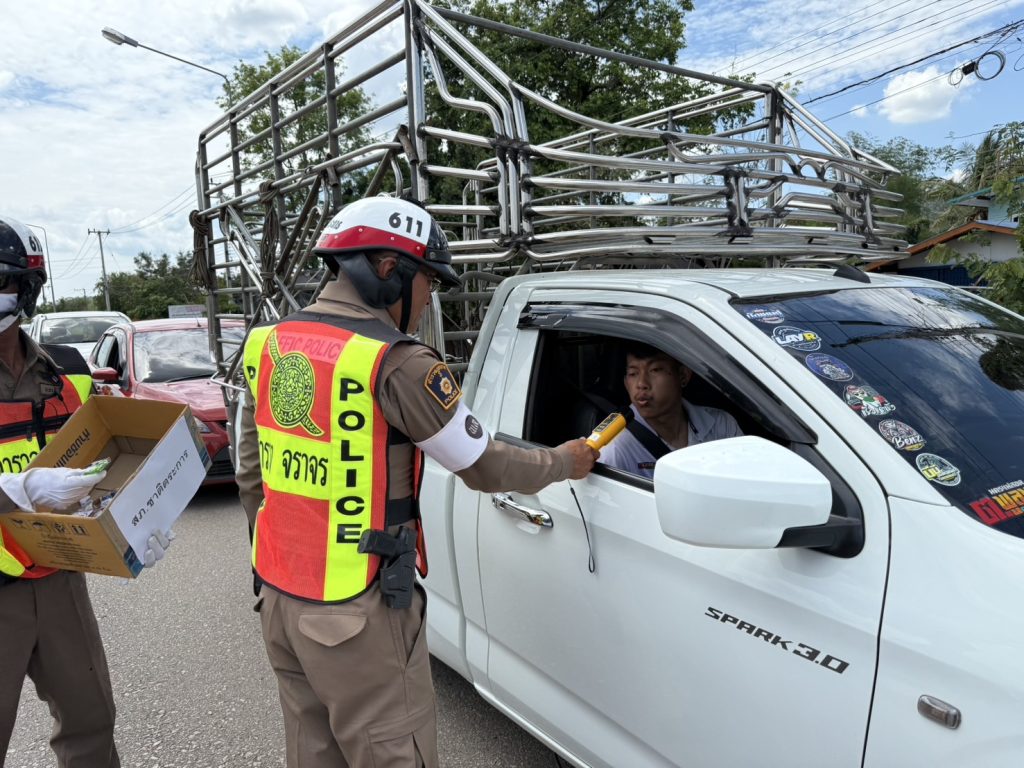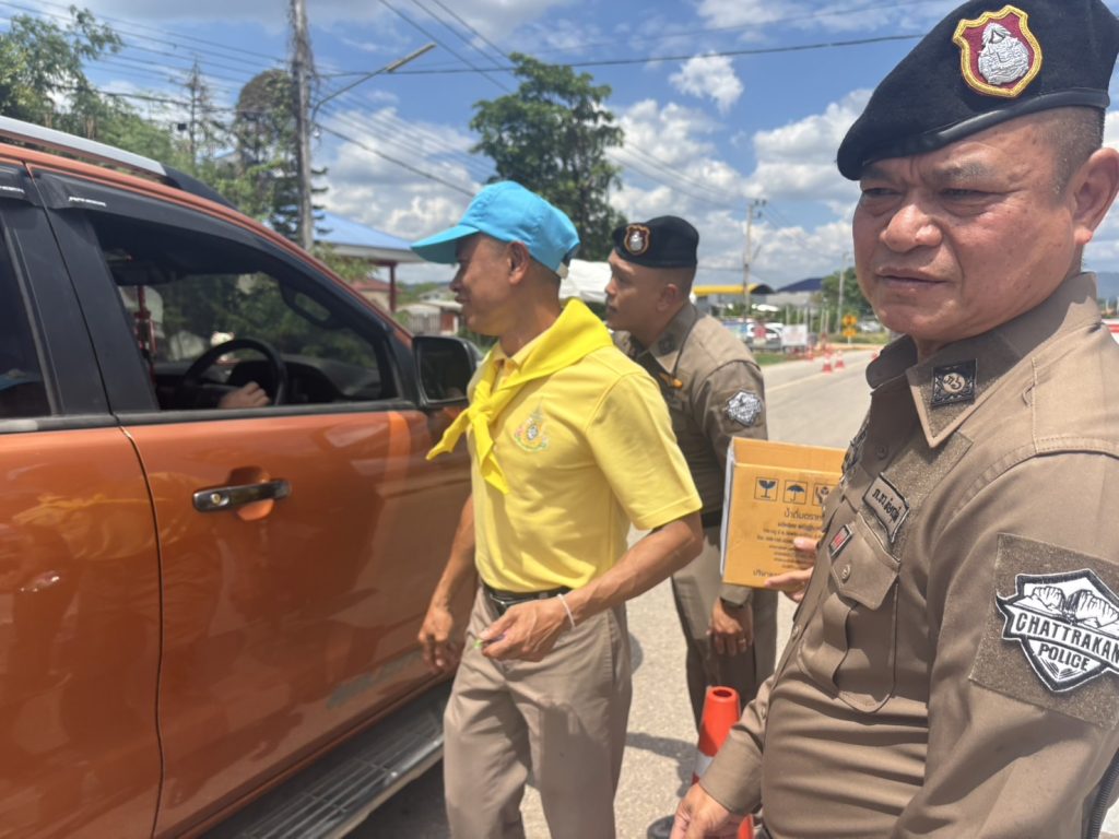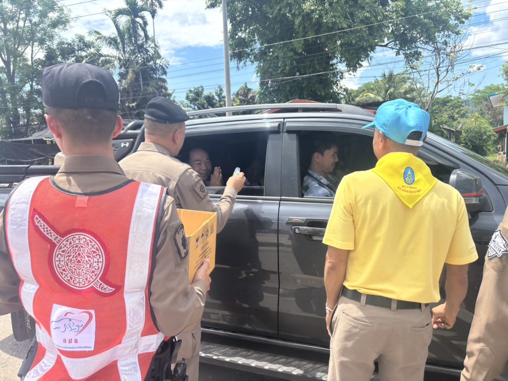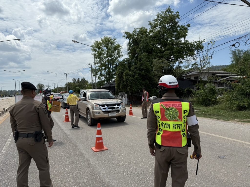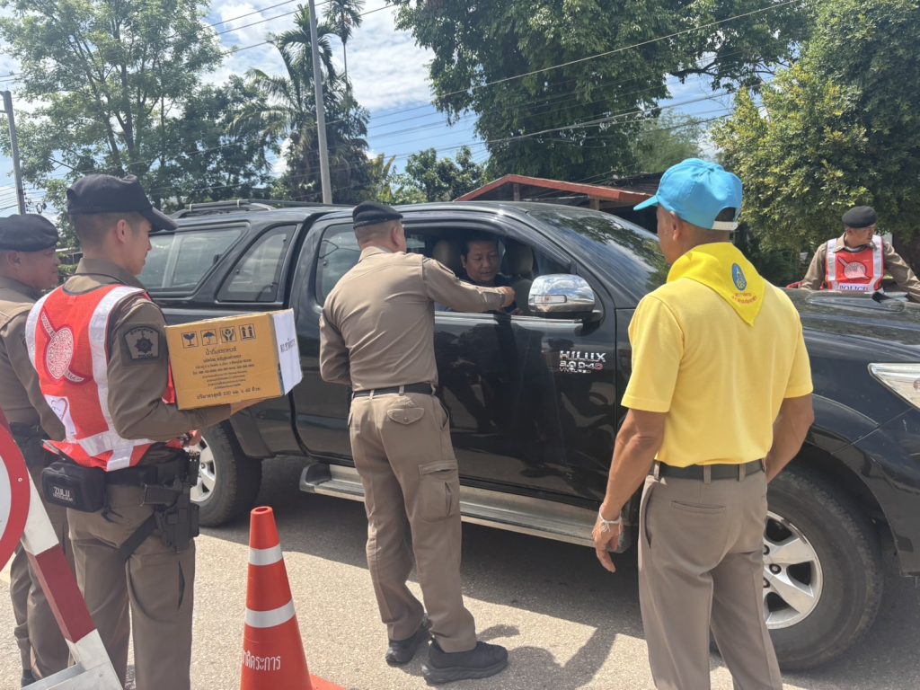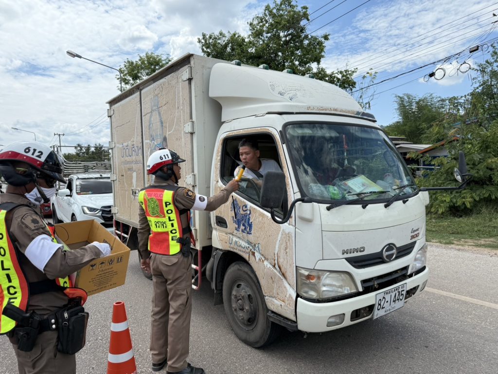 วันนี้ ( 17 เม.ย. 68 ) เวลา 13.30 น. พ.ต.อ.รวิกร อุกฤษฎ์มโนรถ ผกก.สภ.ชาติตระการ, พ.ต.ท.สมปอง พรมรักษา รอง ผกก.ป.สภ.ชาติตระการ พ.ต.ท.ศุภมิตร ตุ่นนิ่ม สวป.สภ.ชาติตระการ พร้อมเจ้าหน้าที่ตำรวจจราจร สายตรวจรถยนต์ สภ.ชาติตระการ ได้ร่วมกันรณรงค์ ลดและป้องกันอุบัติเหตุทางถนน ช่วงเทศกาลสงกรานต์ 2568 บริเวณถนนสาย 1143 ม.4 ต.ป่าแดง อ.ชาติตระการ จว.พิษณุโลก ซึ่งเป็นเส้นทางใช้เดินทางสัญจรไปจากภาคเหนือไปภาคตะวันออกเฉียงเหนือ โดยการกวดขันวินัยจราจร ตรวจเป่าวัดปริมาณแอลกอฮอล์ผู้ขับขี่ และแจกลูกอมจี๊ดจ๊าด น้ำดื่ม เพื่อกระตุ้นให้ผู้ขับขี่เกิดความตื่นตัว กระปรี้กระเปร่า ไม่ง่วงนอน ระวังป้องกันการหลับใน