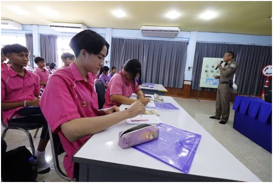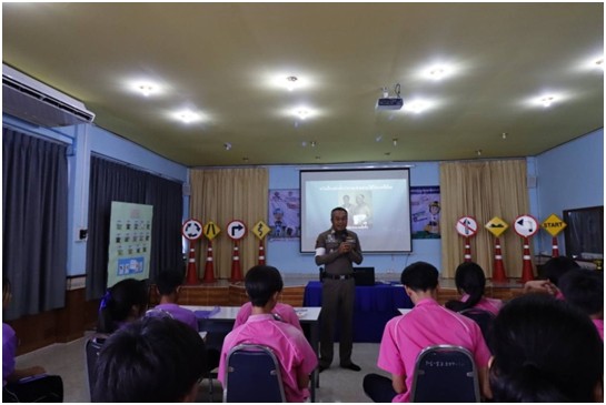 พ.ต.อ.วิเชียร เพชรเสนา ผกก.สภ.ชาติตระการ,พ.ต.ท.พลไพสิฐ พิทักษ์โสภณ รองผกก.ป.,พ.ต.ท.ศุภมิตร ตุ่นนิ่ม สวป.สภ.ชาติตระการ สั่งการให้ ร.ต.อ.ธัชชัย ไพรจิตร รองสวปฯปฏิบัติหน้าที่หัวหน้างานจราจรพร้อมสายตรวจจราจร ประชาสัมพันธ์กฎหมายจราจรและวิธีขับขี่อย่างปลอดภัย ให้กับนักเรียนโรงเรียนชาติตระการวิทยา หมู่ 4 ต.ป่าแดง อ.ชาติตระการ จ.พิษณุโลก โดยมีนักเรียนเข้ารับการอบรมฯ จำนวน 50 คน